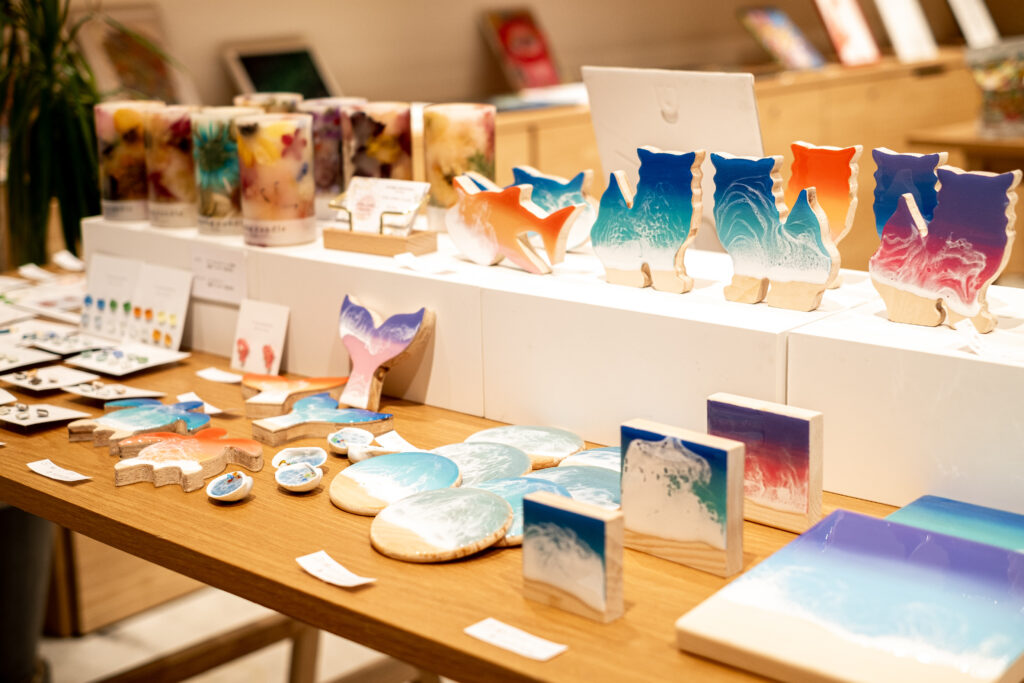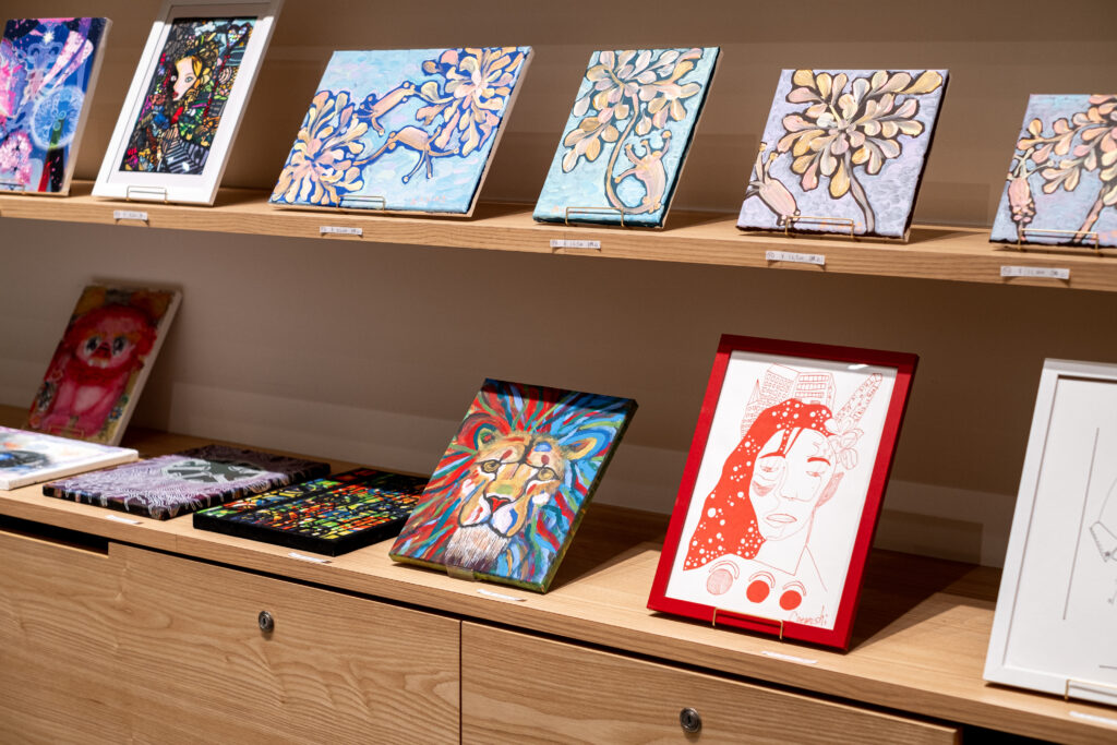 アート作品はもちろん、障がいを持った方の就労支援施設の皆さんが作られた